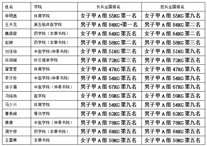 本次比赛历时6天。赛场上,我校参赛队员们顽强拼搏、坚持不懈,一路披荆斩棘,最终获个人项目金牌2枚、银牌3枚、铜牌3枚、第五名11项,长兵甲A组团体总分全国第四名,实现了我校武术对抗项目获奖零的突破。大家的出色表现得到了裁判组一致肯定,成为了本次比赛的一匹“黑马”。