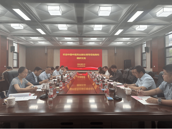 本网讯(文/图 刘阳)2024年6月5日上午,中国中医药出版社社长侯卫伟一行10人到我校调研。校长王耀献、副校长彭新、教务处处长禄保平以及学校各重点学科负责人参会。调研座谈会由彭新主持。