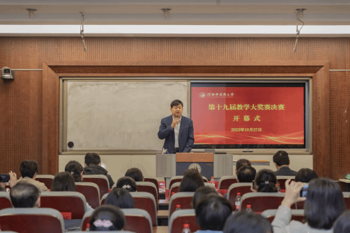 10月27日,决赛在龙子湖校区教学实验楼举行,副校长彭新,校内外专家评委,学生评委,校纪委、教师工作部、教务处、教学评价与教师发展中心等部门负责人、各学院教学副院长以及100多名观摩教师参加了开幕式。开幕式由教务处处长禄保平主持。开幕式上,教学评价与教师发展中心主任呼海涛详细介绍了此次大奖赛的相关情况和决赛规则。彭新在致辞中向来自校内外的21位专家评委表示热烈欢迎,向认真组织初复赛的各学院和积极参赛的各位老师表示衷心感谢。他强调,举办此次教学大奖赛是我校全面贯彻党的教育方针,进一步增强教师队伍建设、推动学校高质量发展的一项重要举措,大赛既是我校教师教学风采的展示,也是“金师”培养和“金课”打造的生动体现,对我校课堂教学质量的提升和课堂教学方法的改革具有重要的示范推动作用。希望各位老师充分利用教学大赛这个平台,以赛代训、以赛促教、以赛促学、以赛促强,牢固树立“躬耕教坛、强国有我”的志向抱负,践行教育家精神,不断增强教书育人本领,力争在高层次教学竞赛成绩和教研成果上更进一步,为学校“双一流”创建和中医药事业发展贡献自己的智慧和力量。