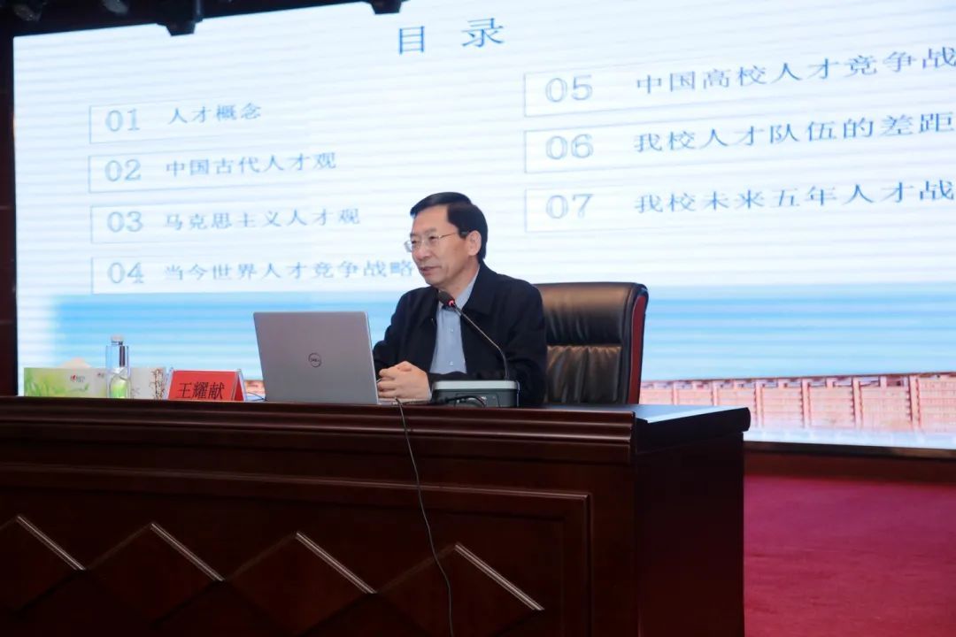 王耀献分别从人才概念、中国古代人才观、马克思主义人才观、当今世界人才竞争战略等七个方面进行了详细的论述。他结合自身多年的工作实践,剖析了我校人才队伍的差距和问题,详细解析了人才培养的5R模式和我校未来五年人才战略与措施,并对医院的人才引育和管理提出了具体建议。他指出,中医药事业振兴,人才是关键,要统筹推进各类人才队伍建设,不断完善人才引育机制,为推动医院高质量发展和学校“双一流”建设夯实人才基础,强化人才支撑。